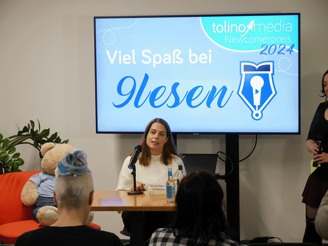 Damit war der Abend aber noch lange nicht vorbei. Ein weiteres Highlight folgte mit dem Leseabend in Kooperation mit „9Lesen“. Bei diesem gewährten nicht nur unsere drei Gewinnerinnen einen Einblick in ihre Bücher, sondern es lasen auch neue Stimmen Auszüge aus ihren – vielfältigen und spannenden – Titeln vor.