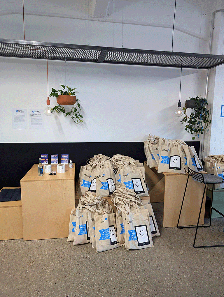 - Die Goodie-Bags stehen direkt am Eingang bereit…