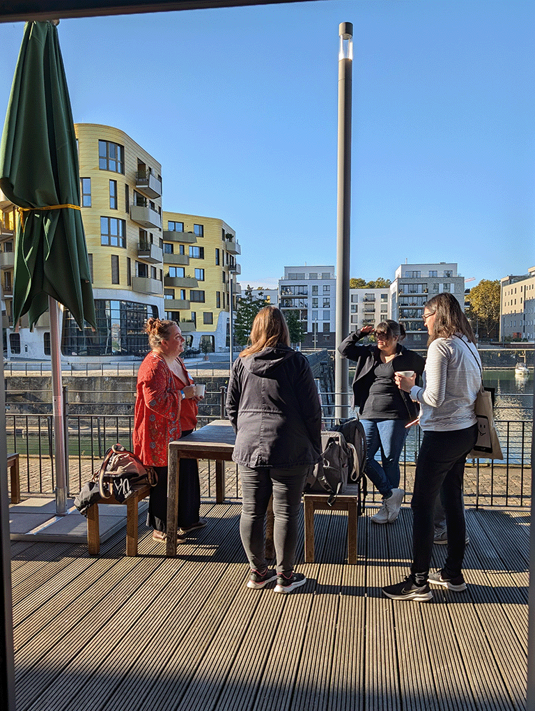Nichts trägt besser zu einer zu einer positiven Wohlfühlstimmung bei als die passende Location. Insofern freuten wir uns riesig, dass unser Camp auch in diesem Jahr im Gutenberg Digital Hub in Mainz ein Zuhause gefunden hat. Direkt am Rhein gelegen und beschienen von der warmen Herbstsonne begrüßten die roten Backsteinmauern des Gebäudes am Morgen unsere Gäste. SchreibBarCamp-Fans der ersten Stunde haben sicher die gemütlich eingerichteten Räume und große Community-Fläche wiedererkannt. Unsere Sessionräume „Haibert“, „Sharkira“ und „Hai Live“ boten erneut Platz für zahlreiche Gesprächsrunden und anregende Sessions.